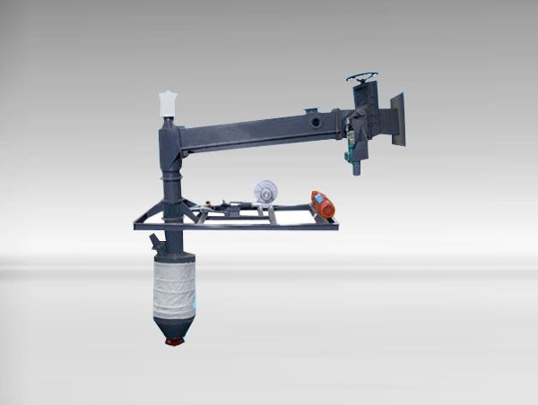 DFS庫側(cè)水泥散裝機主要用于散裝水泥及其它粉狀物料的自動計量裝車。庫側(cè)散裝機安裝于水泥庫的側(cè)面,供汽車、火車等的罐形容器裝料。主要由“卸料閘門”、“輸送斜槽”、“彎頭”、“下料接管”、“散裝機”、“除塵器”、“斜槽風機”等組成。庫內(nèi)部分通過支架吊掛在水泥庫內(nèi)部,以10%的斜度放置,以使水泥料倉內(nèi)的水泥粉呈流態(tài)化(此高壓壓縮空氣由用戶自備羅茨風機或由廠內(nèi)壓縮空氣總管經(jīng)減壓后接入)?!俺隽线B接槽”、“輸送斜槽”在水泥庫外按出料順序連接同樣以10%的斜度放置,正常使用時打開?!靶读祥l門”用來控制散裝機裝車時的水泥落料狀態(tài);“斜槽風機”用來使輸送斜槽內(nèi)水泥物料流態(tài)化。散裝機為其主體設備,其下料頭伸縮長度為1.6米,以適應不同車型的裝車要求。本散裝機伸縮管下降至罐形容器入料口位置的停止及料裝滿時卸料閘門的關閉均為自動控制,下料頭的內(nèi)、外伸縮管間接除塵器,裝車時無粉塵飛揚。